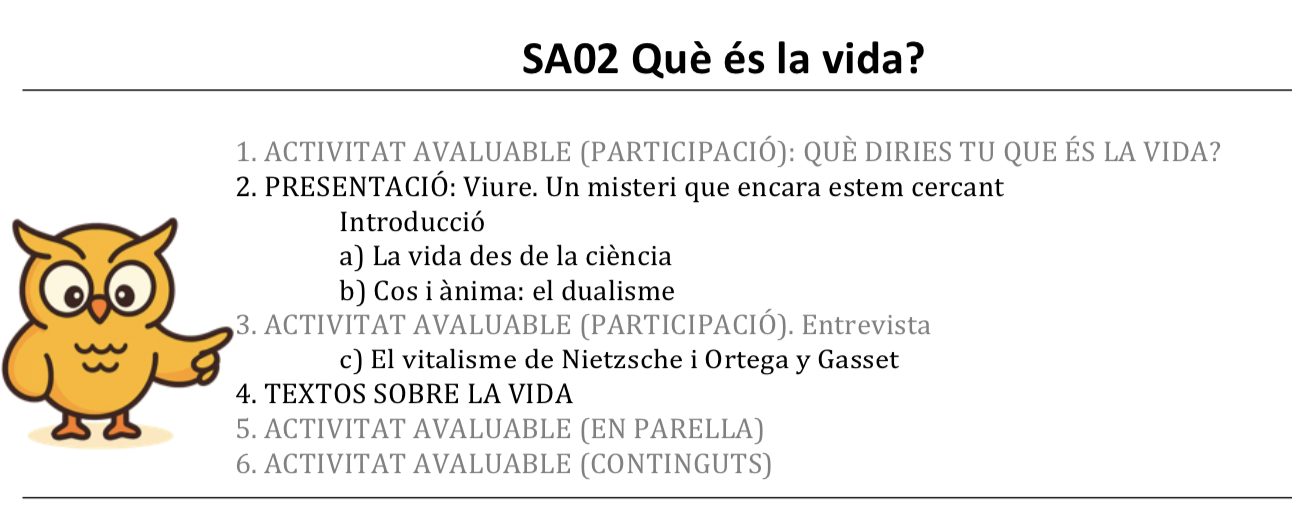 Selecciona la secció SA02 QUÈ ÉS LA VIDA?